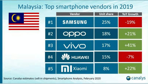 Canalys, as an independent data analyst company from Singapore with branches worldwide, has released a new Smartphone Market Pulse report on the Malaysia smartphone shipments and annual growth in 2019.
