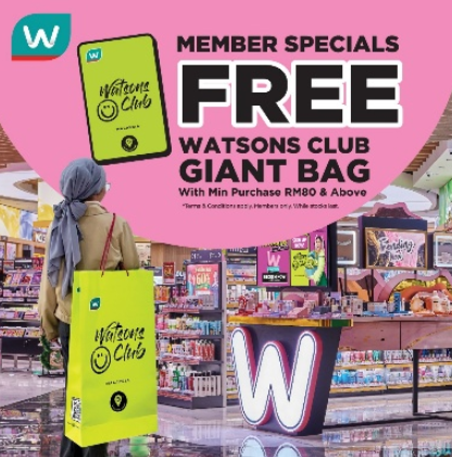 Sepanjang bulan September, ahli Watsons Club akan menerima 10x mata bagi produk terpilih dan tawaran eksklusif termasuk potongan 80% untuk item kedua. Ahli juga berpeluang menerima Watsons Club Giant Shopping Bag percuma (Hadiah Dengan Pembelian) dengan perbelanjaan minimum RM80 di kedai, sementara stok masih ada.Sebagai sebahagian daripada sambutan ini, Watsons menganjurkan Biggest Rewards Expo dari 2 hingga 7 September 2025 di LG Oval, 1 Utama Shopping Centre.