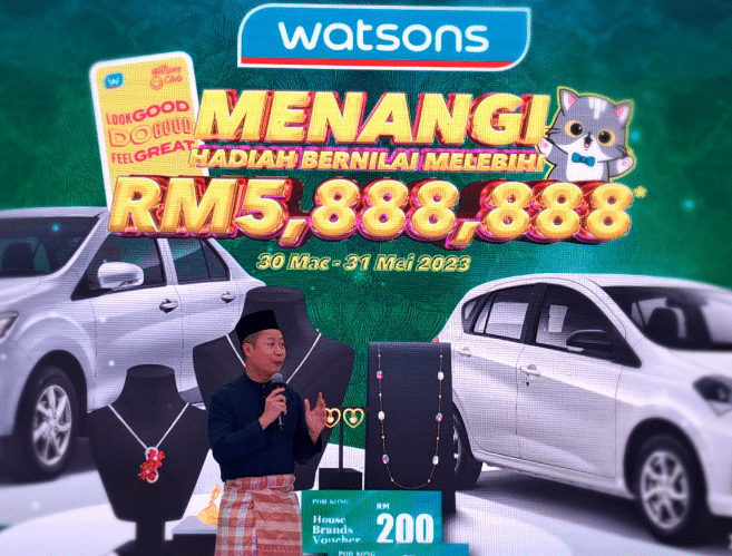 “Watsons Malaysia membawakan anda pelbagai promosi hebat untuk semua ahli Kelab Watsons. Terdapat lebih banyak alasan untuk diraikan bersama kami kerana kami memberikan hadiah bernilai sehingga RM5,888,888.