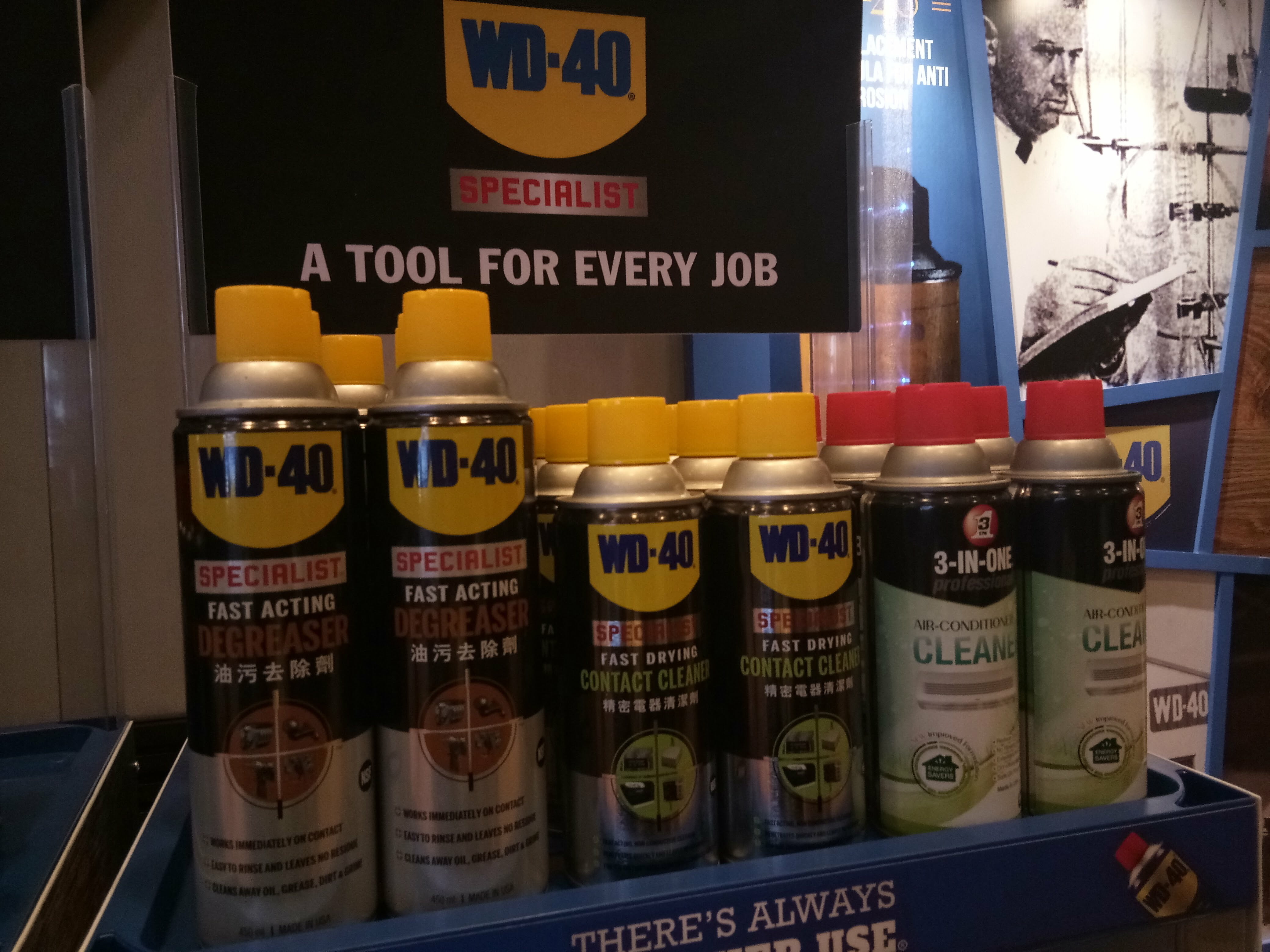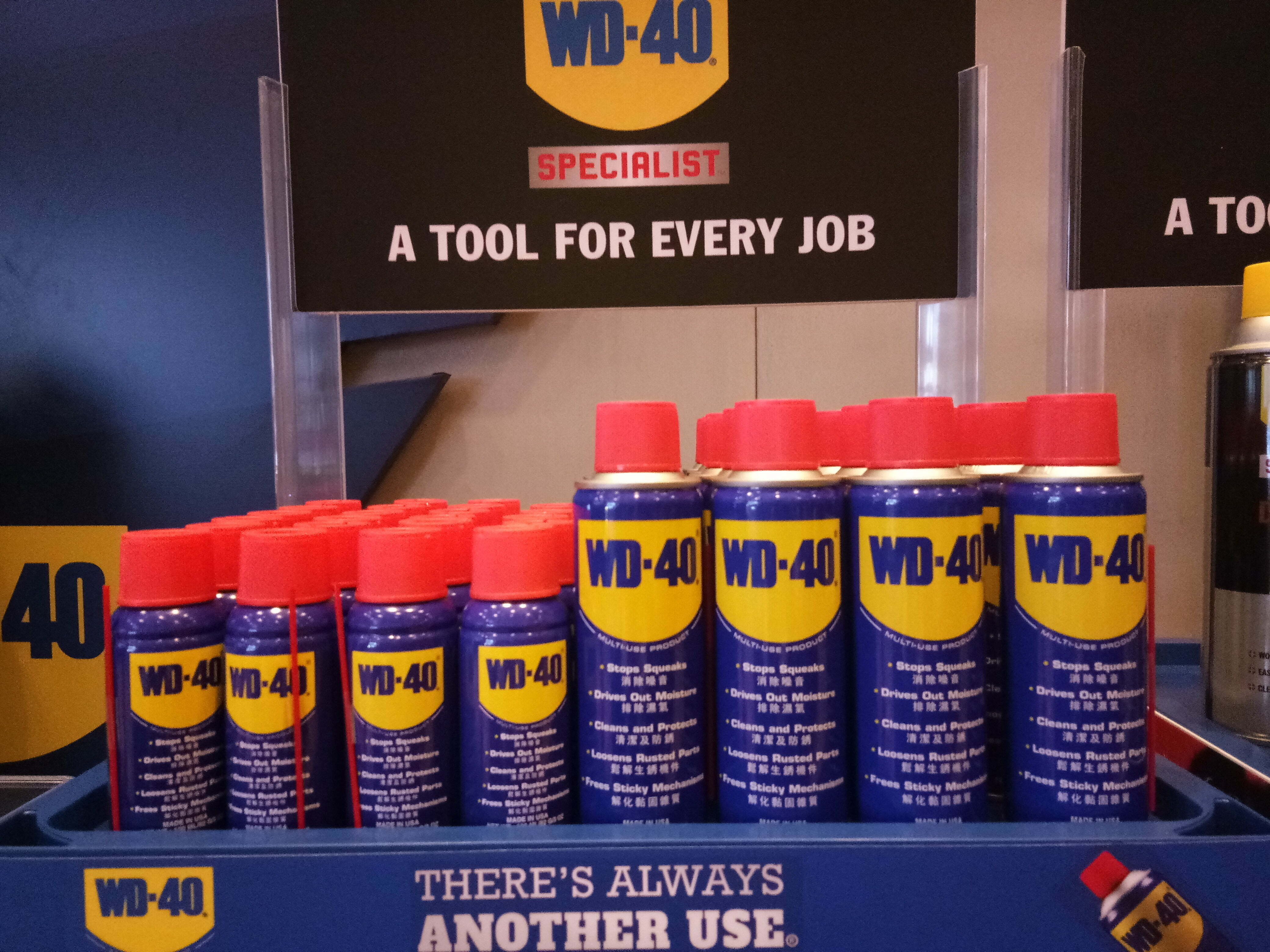 Produk syarikat WD-40 sentiasa menjadi pilihan mereka yang profesional dalam bidang penyelengaraan dan amatur DIY dalam kerja-kerja mereka .seperti perkakasan, industri, automotif , sukan, basikal dan jualan runcit.